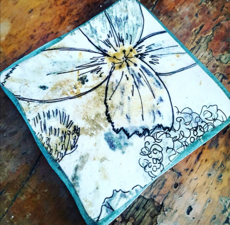 - Place your tile onto a piece of felt and draw round with tailor’s chalk.