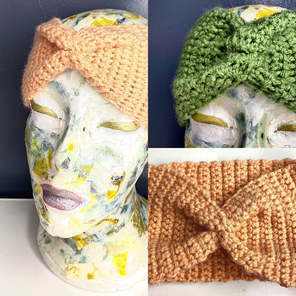 There are loads of ways to make these gorgeous headbands even more pretty- you could add beads or buttons, you could use multiple colours of yarn or just add a contrasting colour trim round the outside.